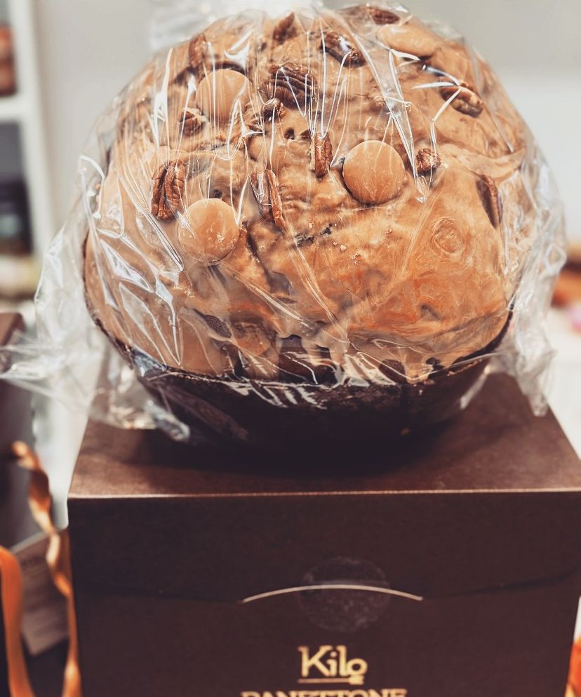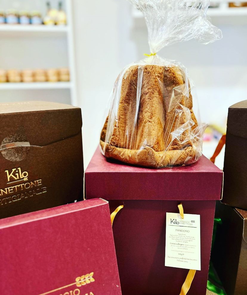 I gusti sono Pandoro, Classico, Solo Uvetta, Cioccolato Fondente, Cioccolato al Latte, Frutti di Bosco canditi e Cioccolato finissimo Bianco, Cioccolato Fondente e Scorze Arancia Candita, Pistacchio con Barattolo di crema Spalmabile a parte. Poi Limited Edition solo pochi pezzi, Cioccolato al Caramello Belga e Noci Pecan impasto fatto col Caramello e nel suo interno Noci Pecan e pezzi di Cioccolato Belga al caramello.
